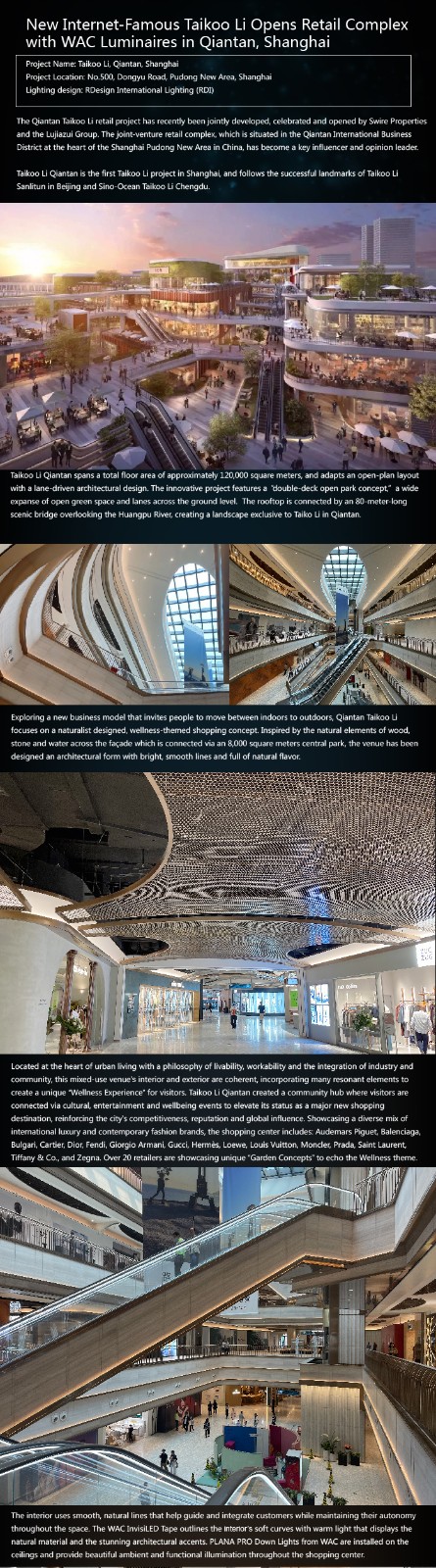 New Internet Famous Taikoo Li Opens Retail Complex With WAC Luminaires in Qiantan,Shanghai